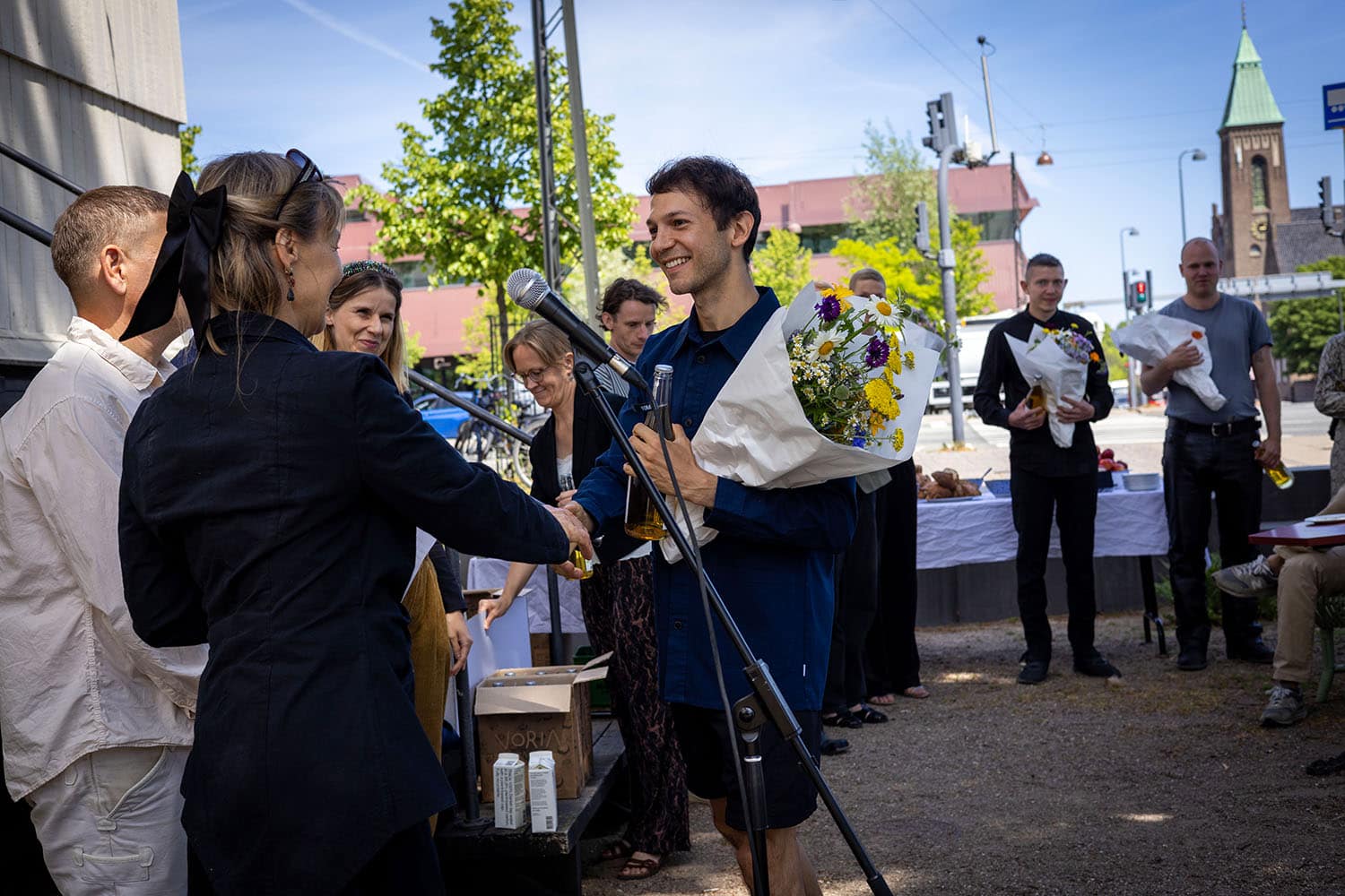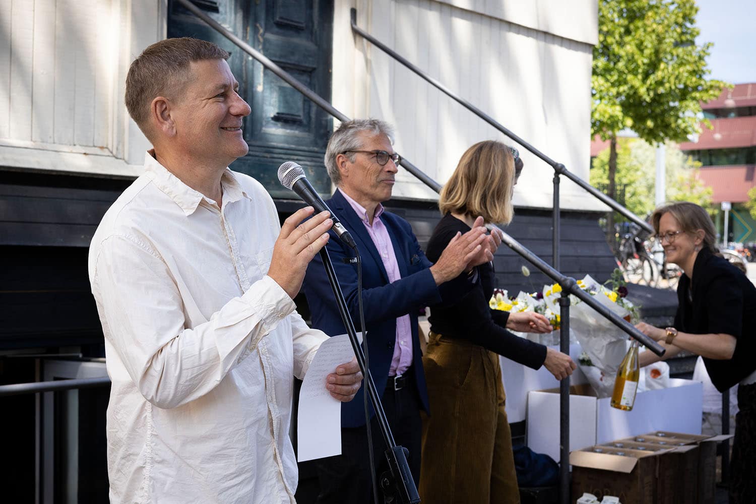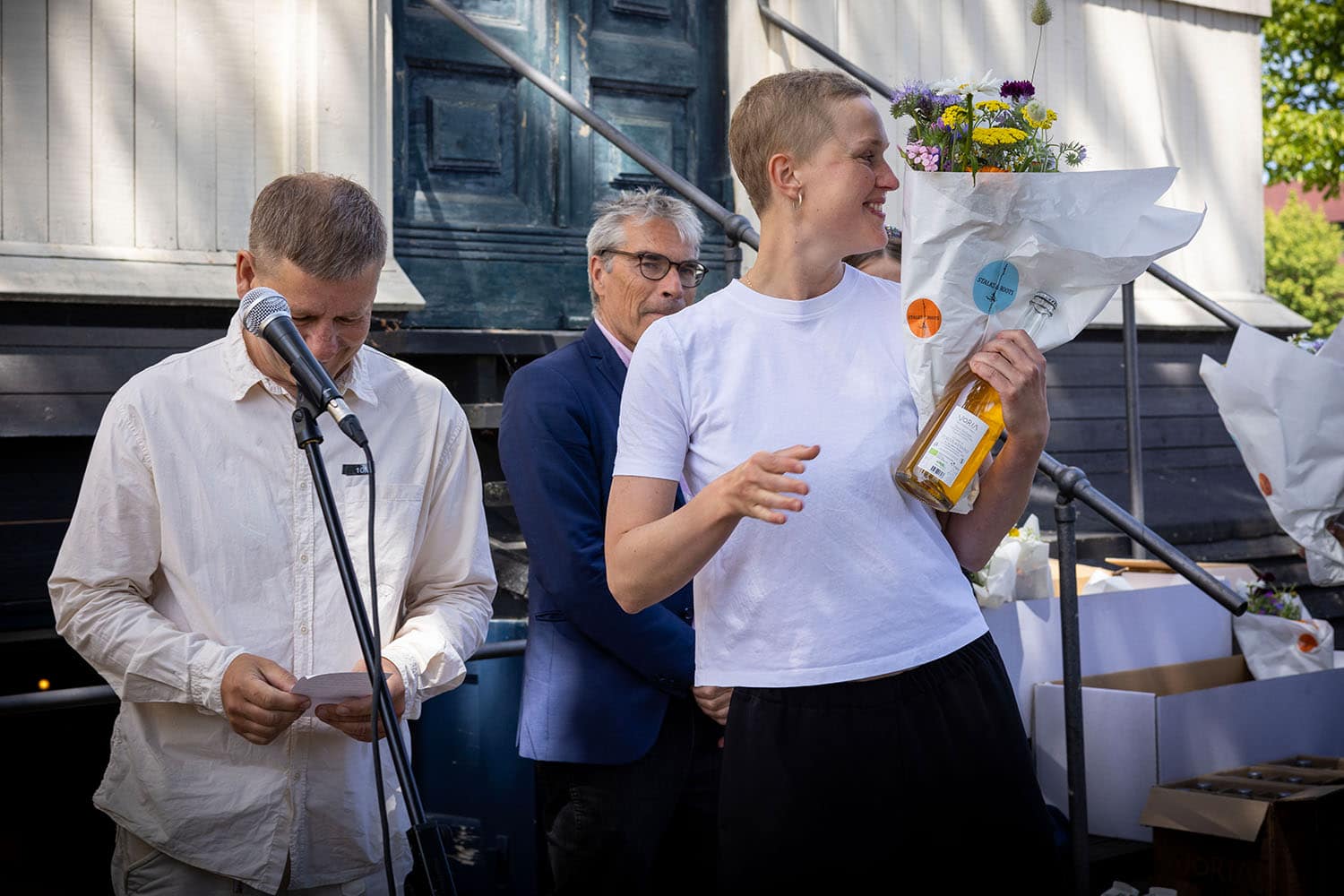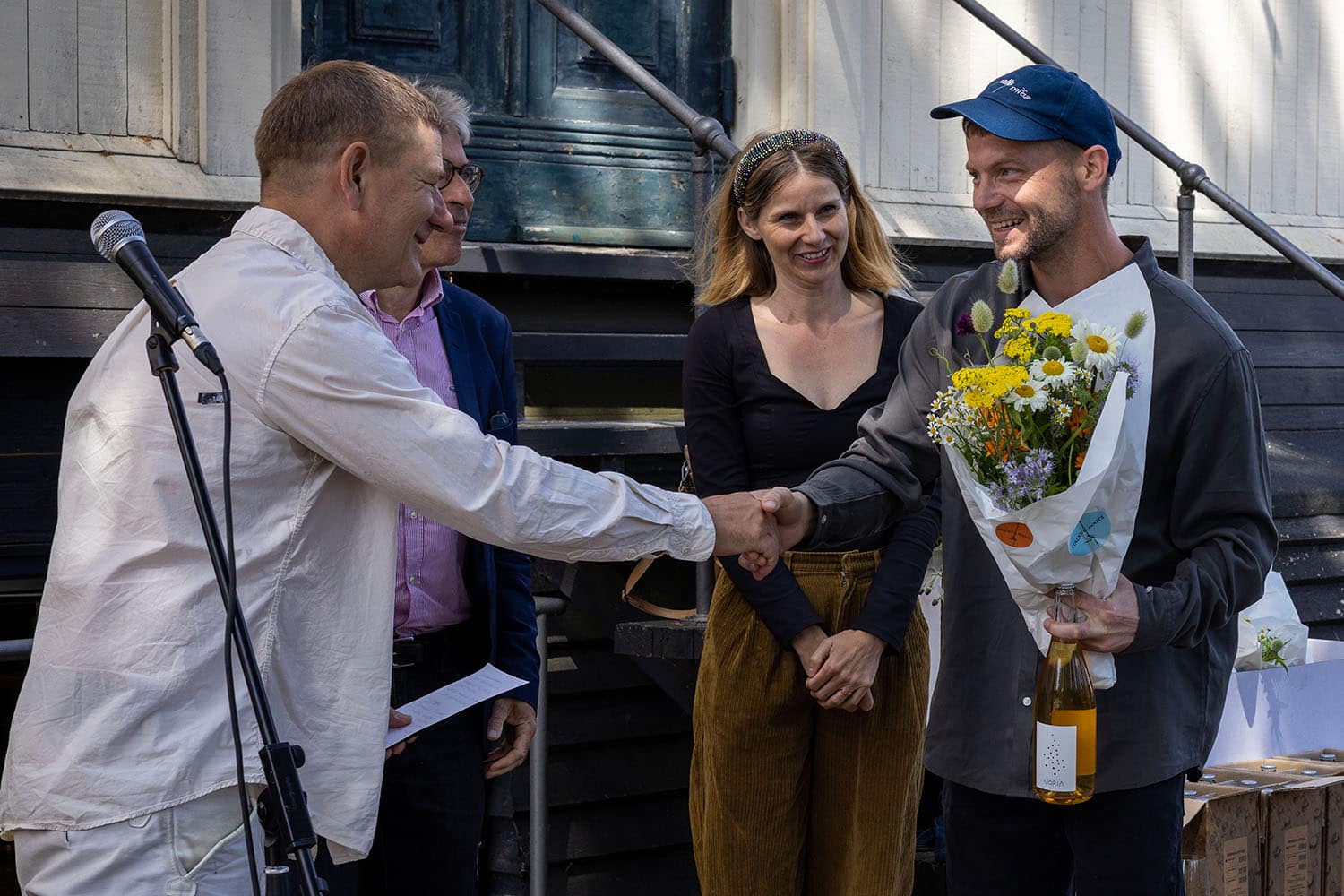Her er et par stemningsbilleder fra dagens cermoni, som blev afholdt i uformelle rammer i gårdenhaven til café Pegasus på Den Frie.