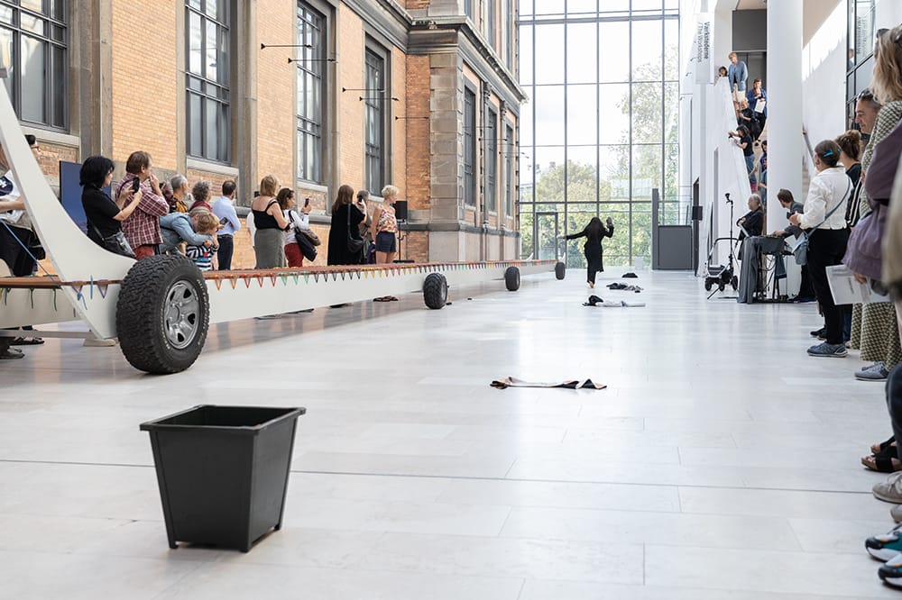 Under hele seancen bar hun en pakke i skind, som hun af og til overgav til en fra publikum, og mod slutningen afslørede hun pakkens indhold: nogle smukke grønlandske kamikker. En skulpturel performance, der skabte en stor organisme og sameksistens med de mest simple, men intense midler.