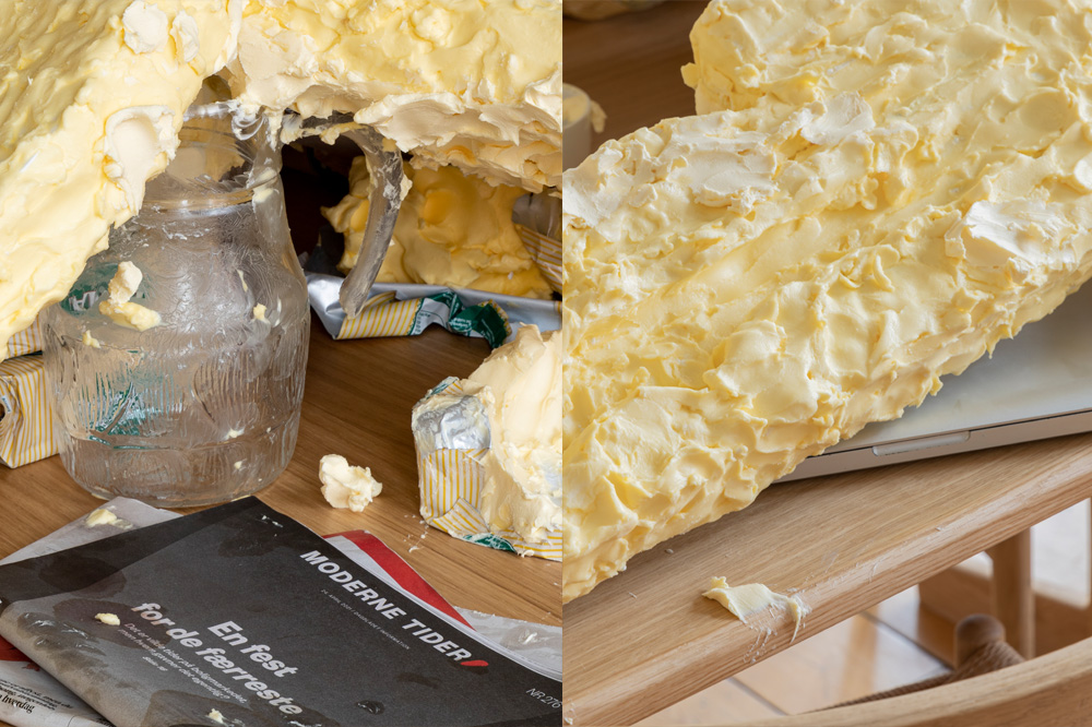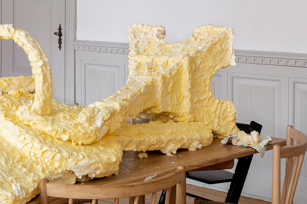 I sin seneste udstilling på Kunsthal 44Møen ”Loving Eyes” kredsede værkerne om sammenbrud og afmagt i både samfunds- og dagligdagskontekst gennem en hverdagsscenografi hvor plastiklegetøj støbt i massiv bronze afgav aftryk i udstillingsrummet som delvist var af blød modellervoks.