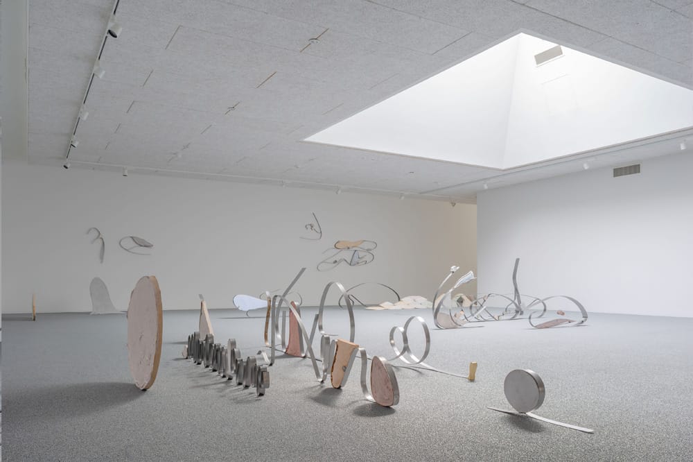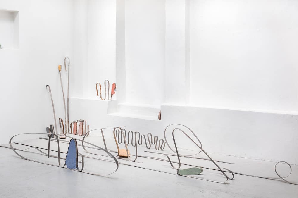 Marie Raffn arbejder hovedsageligt med abstrakt skulptur, ofte i konstellationer af adskillige dele, der udgør en helhed.